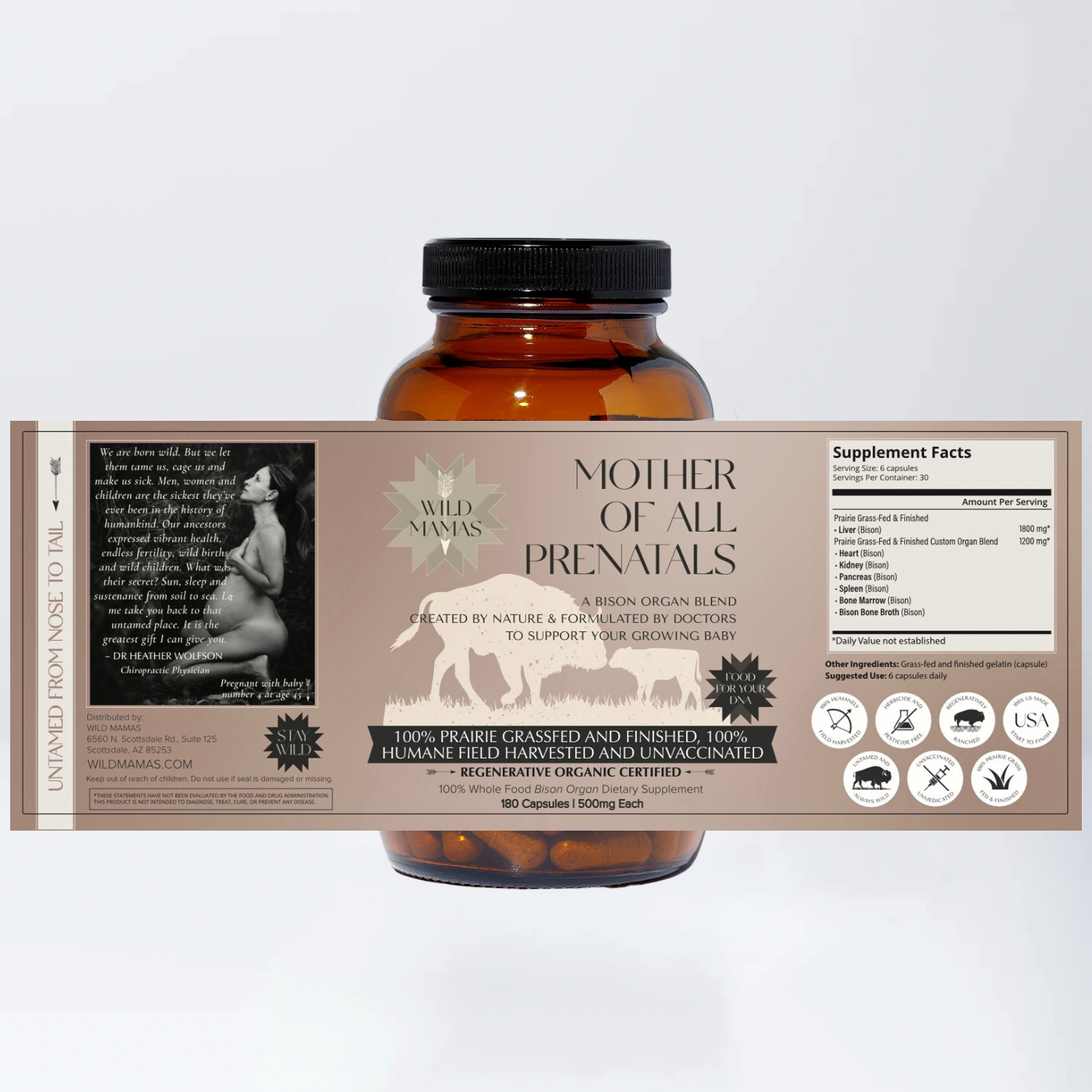 Dr. Heather Wolfson created this "better than prenatal" with the deepest intention to save mamas and babies from the toxic 21st century world. She took the most nutrient dense, most wild animal, the bison, and handpicked its powerful organs to flood your body with primal nutrition, creating a blueprint for a thriving pregnancy and healthy baby.